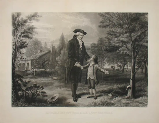 1867 engraving by John C McRae showing a young George Washington who 'could not lie'