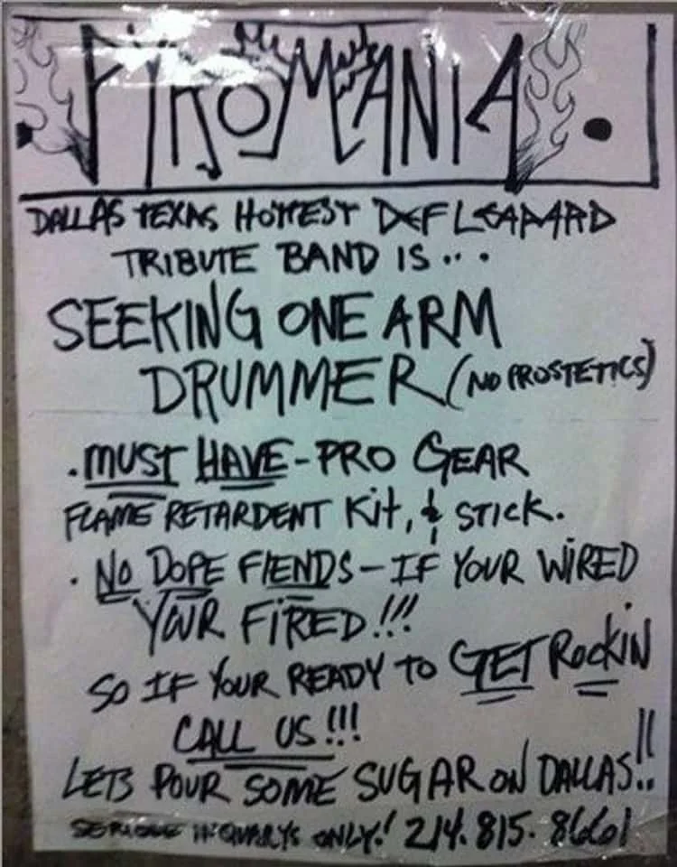 Another old-school form of search via small ads has helped create many bands. In 1974 Bruce Springsteen put an ad in The Village Voice looking for a drummer and found E Street cornerstone Max Weinberg. Guns N’ Roses guitarist Slash and Steven Adler posted in LA’s The Recycler and found bassist Duff McKagan, the same method used by Metallica’s Lars Ulrich to find guitar James Hetfield. And apparently Kim Deal was the only person to answer Black Francis’ ad seeking a bassist for Pixies, and she didn’t even have a bass, but borrowed her sister Kelley’s. The rest is history but some ads are less conventional: