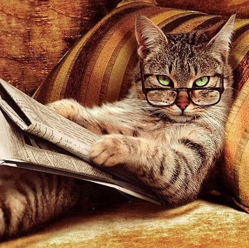 Utterly gratuitous clever feline image doing a crossword. Catnip for the internet.